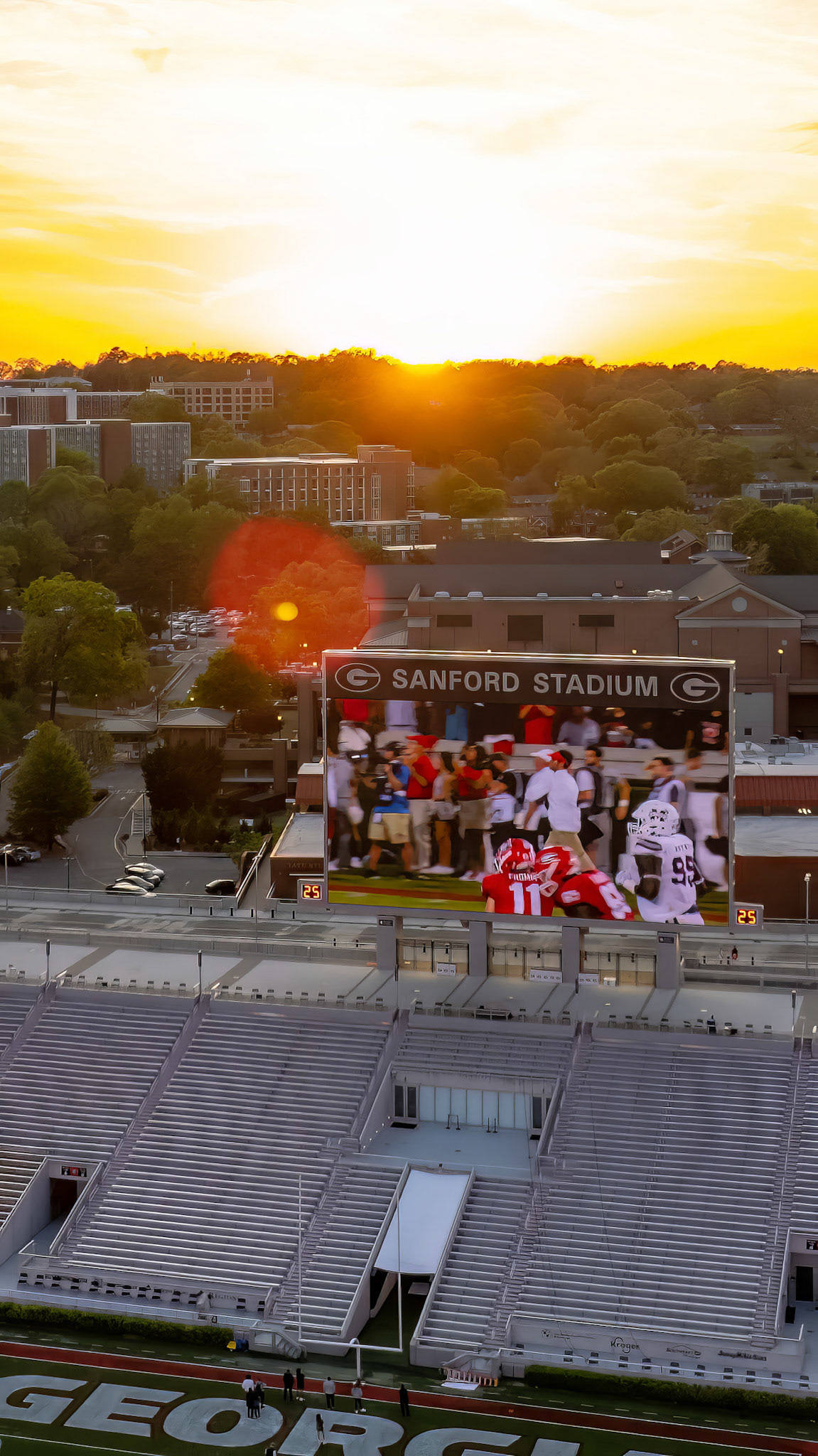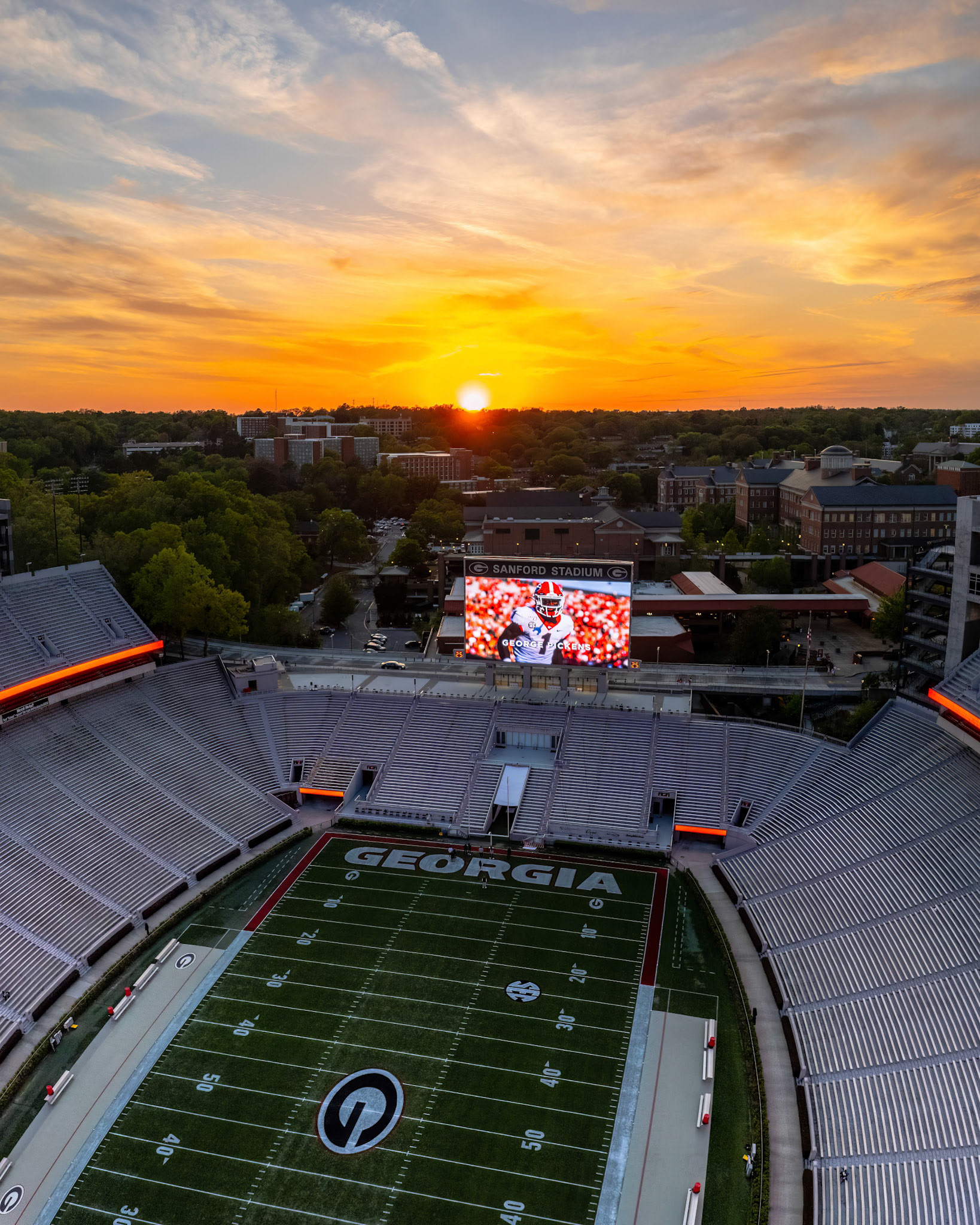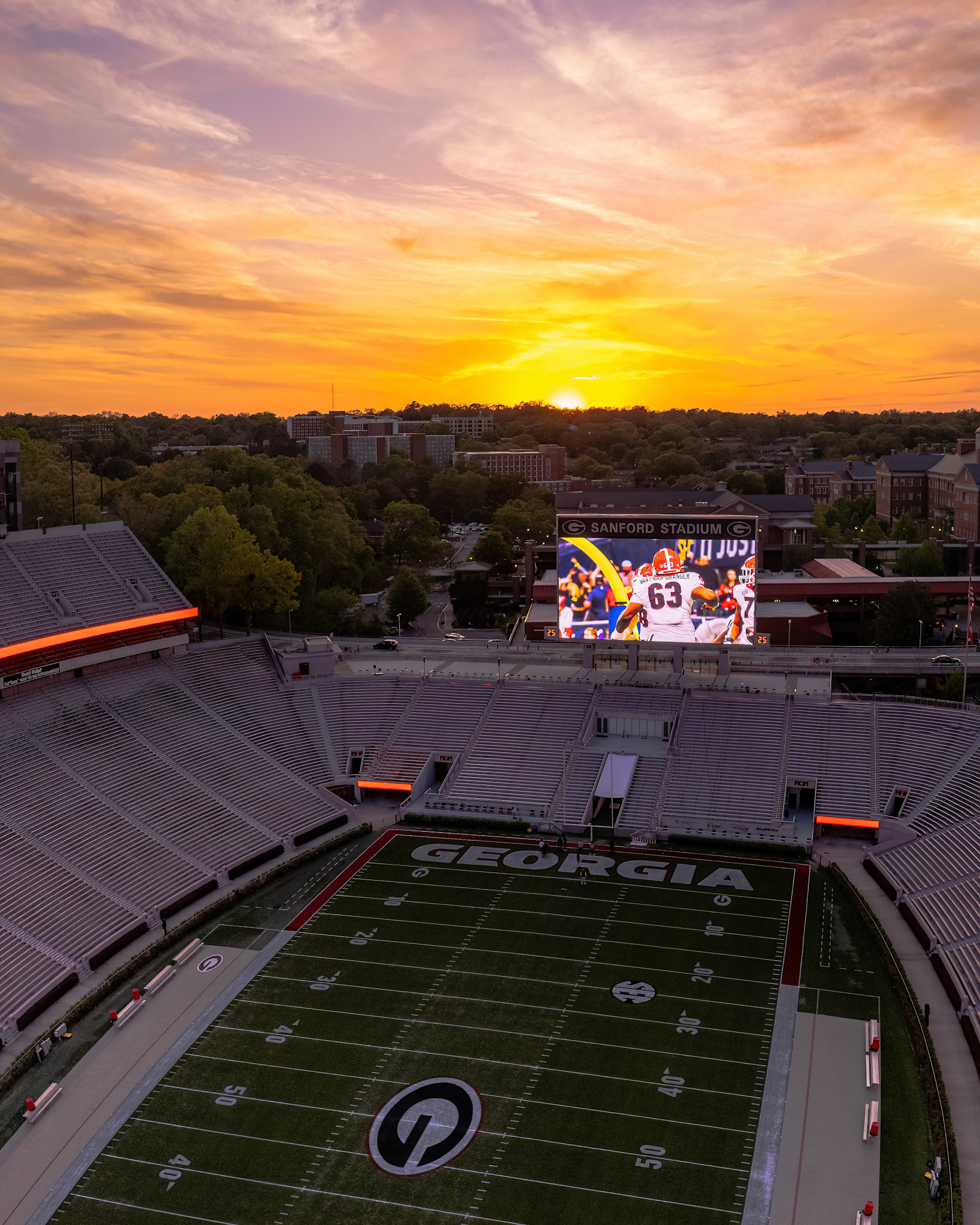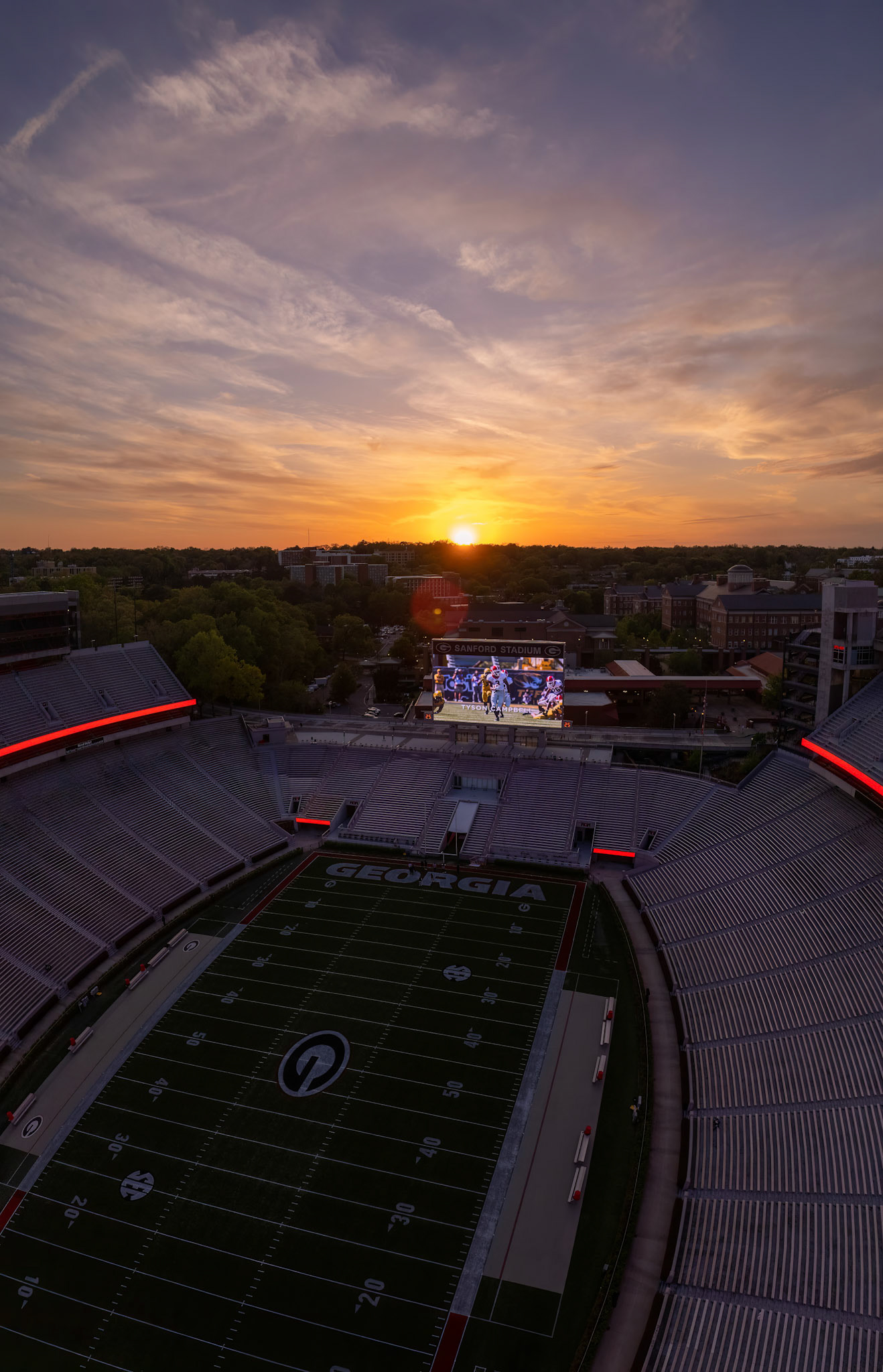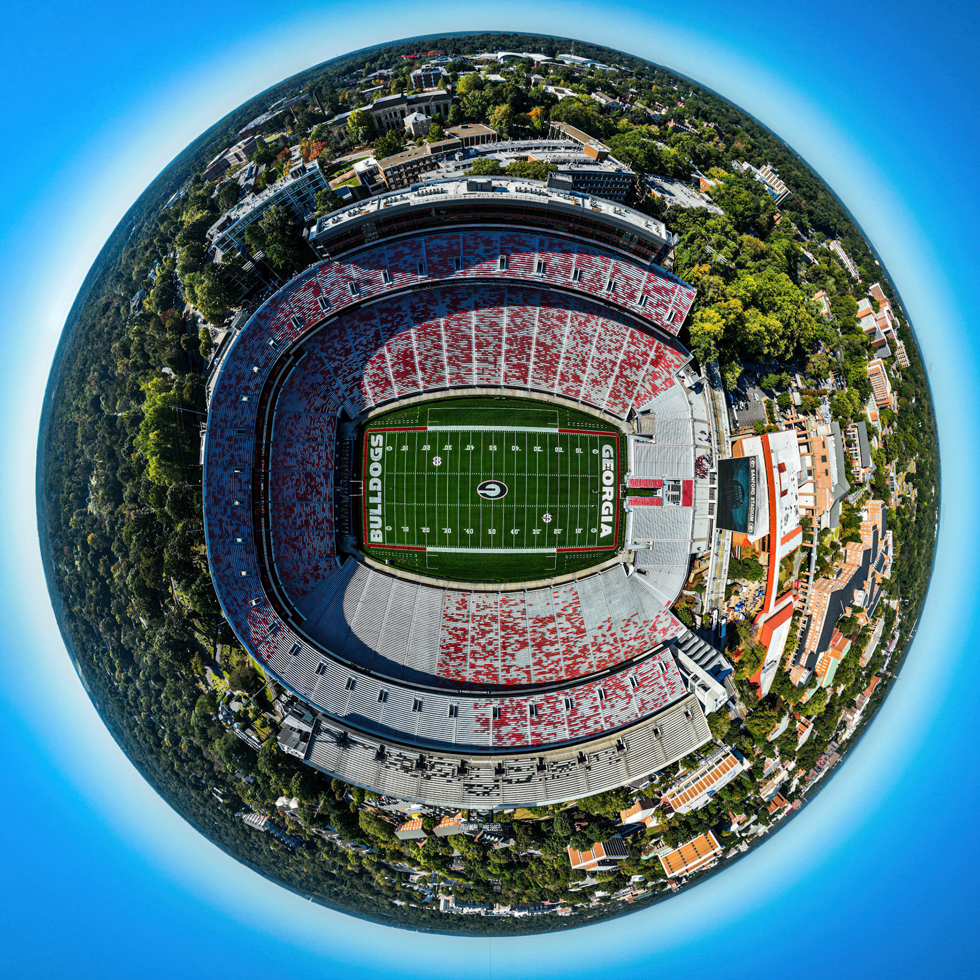 Tiny planet of Sanford Stadium, home of the Georgia Bulldawgs! Captured this tiny planet using my DJI Air 2s with sunset colors.
