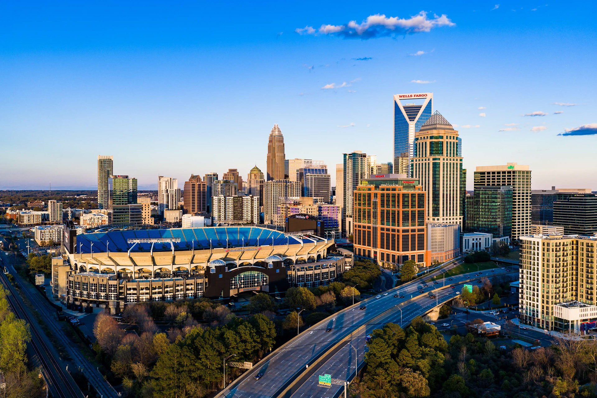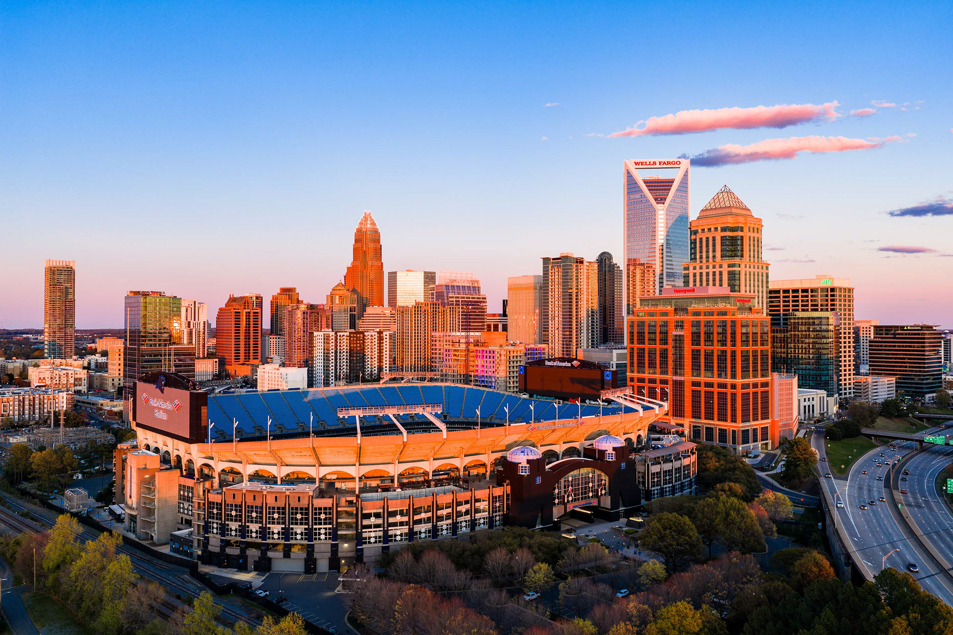 Charlotte Skyline: Sunset Drone Photography
