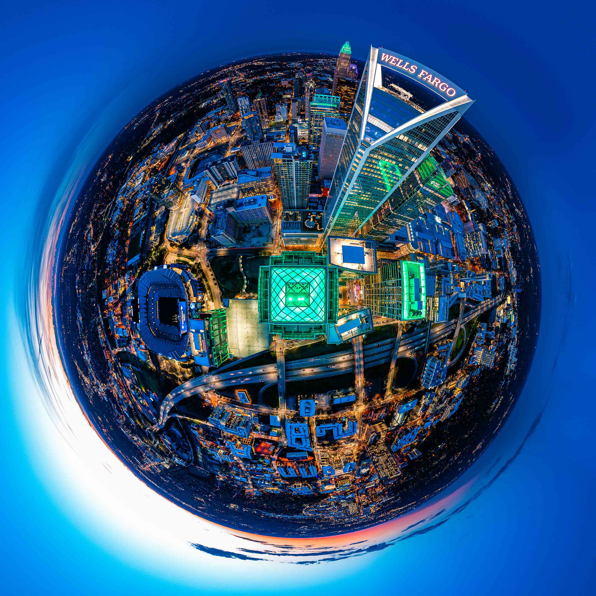 The technical execution of this gallery emphasizes high dynamic range imaging and precise aerial positioning to showcase Charlotte’s urban density and modern design. In addition to traditional wide-angle perspectives and detailed architectural crops, the project incorporates advanced 360° "Tiny Planet" projections that provide a unique, spherical interpretation of the city’s major thoroughfares and landmarks. These visuals provide a clean, professional look at the evolving skyline, optimized for architectural review and commercial media applications.