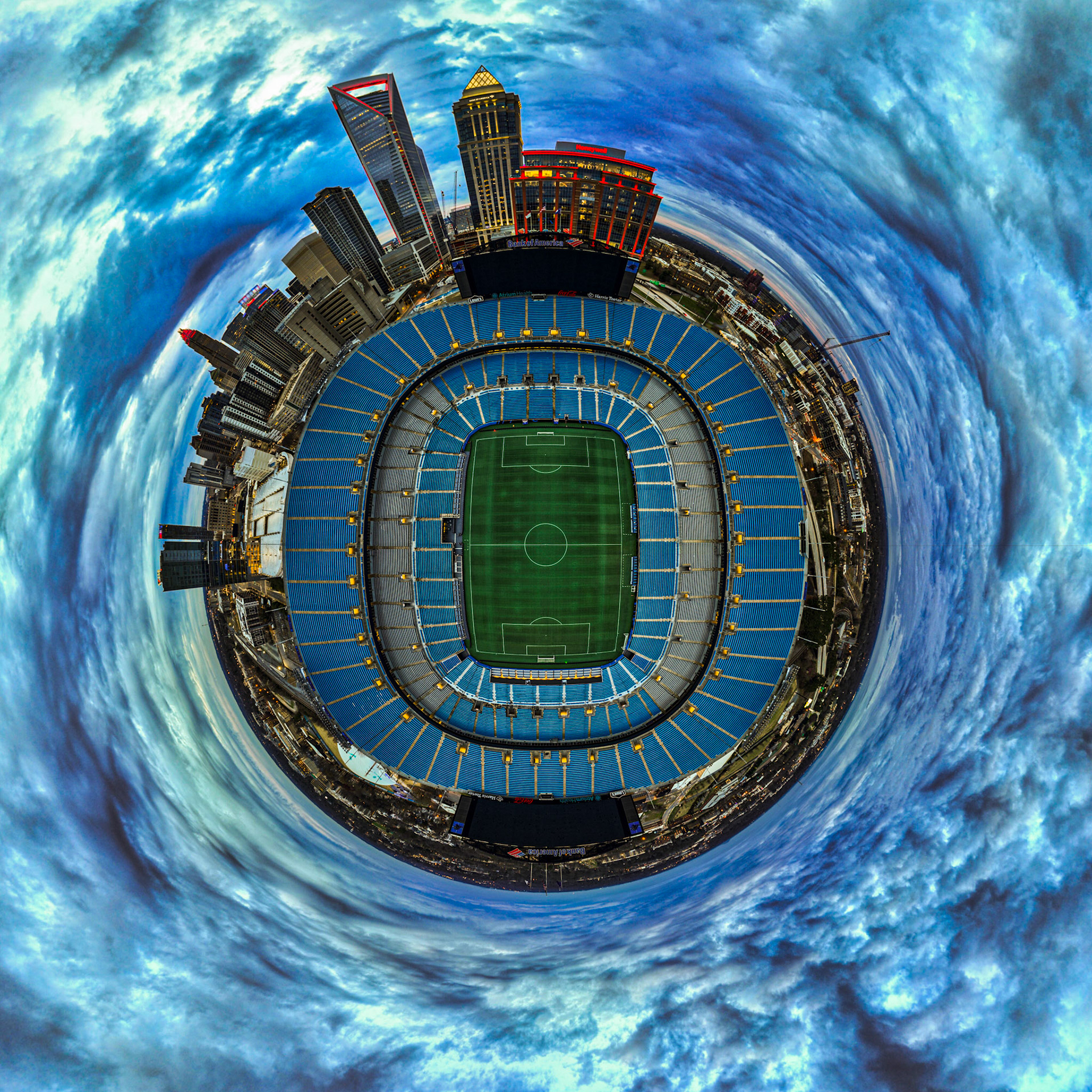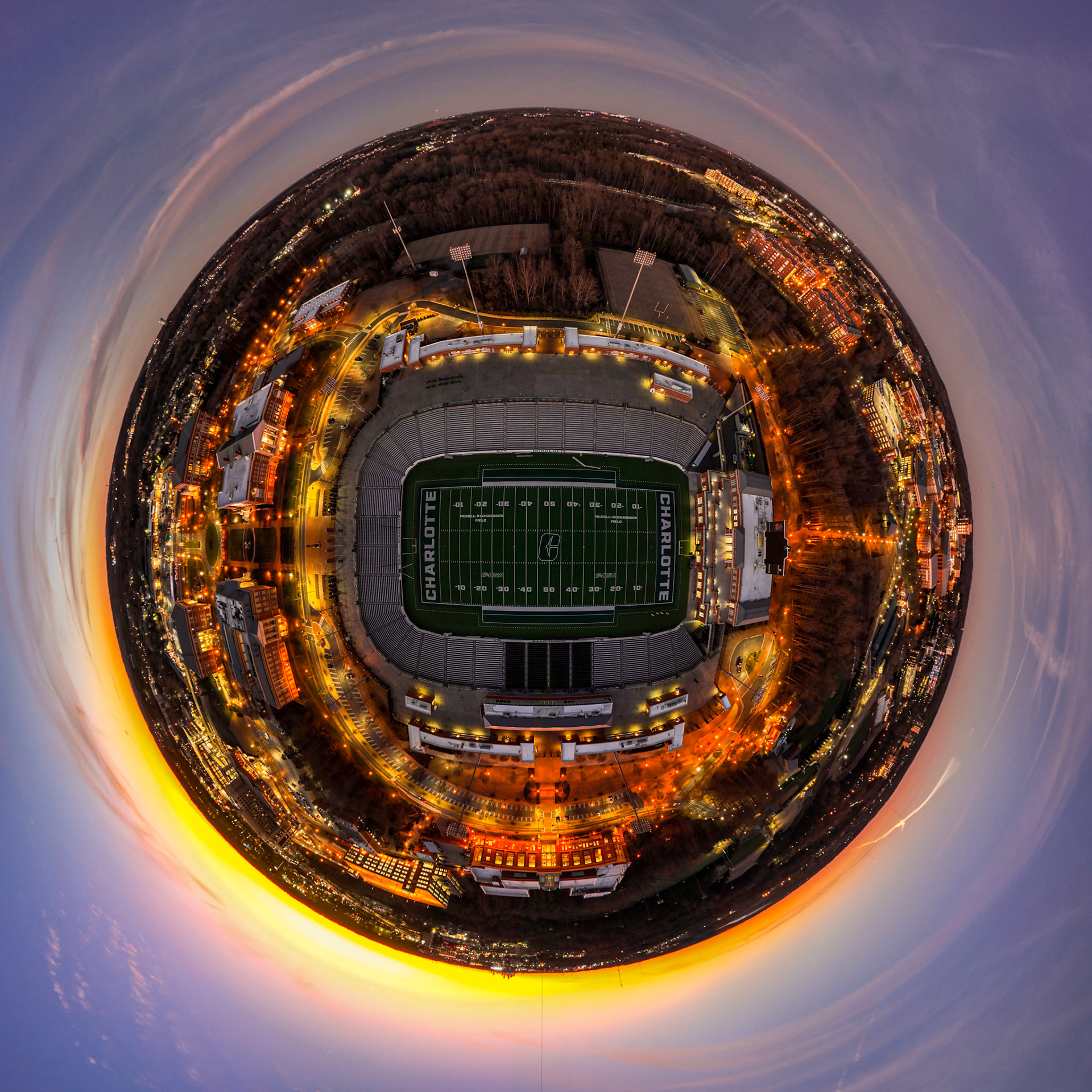 Tiny planet of Sanford Stadium, home of the Georgia Bulldawgs! Captured this tiny planet using my DJI Air 2s with sunset colors.