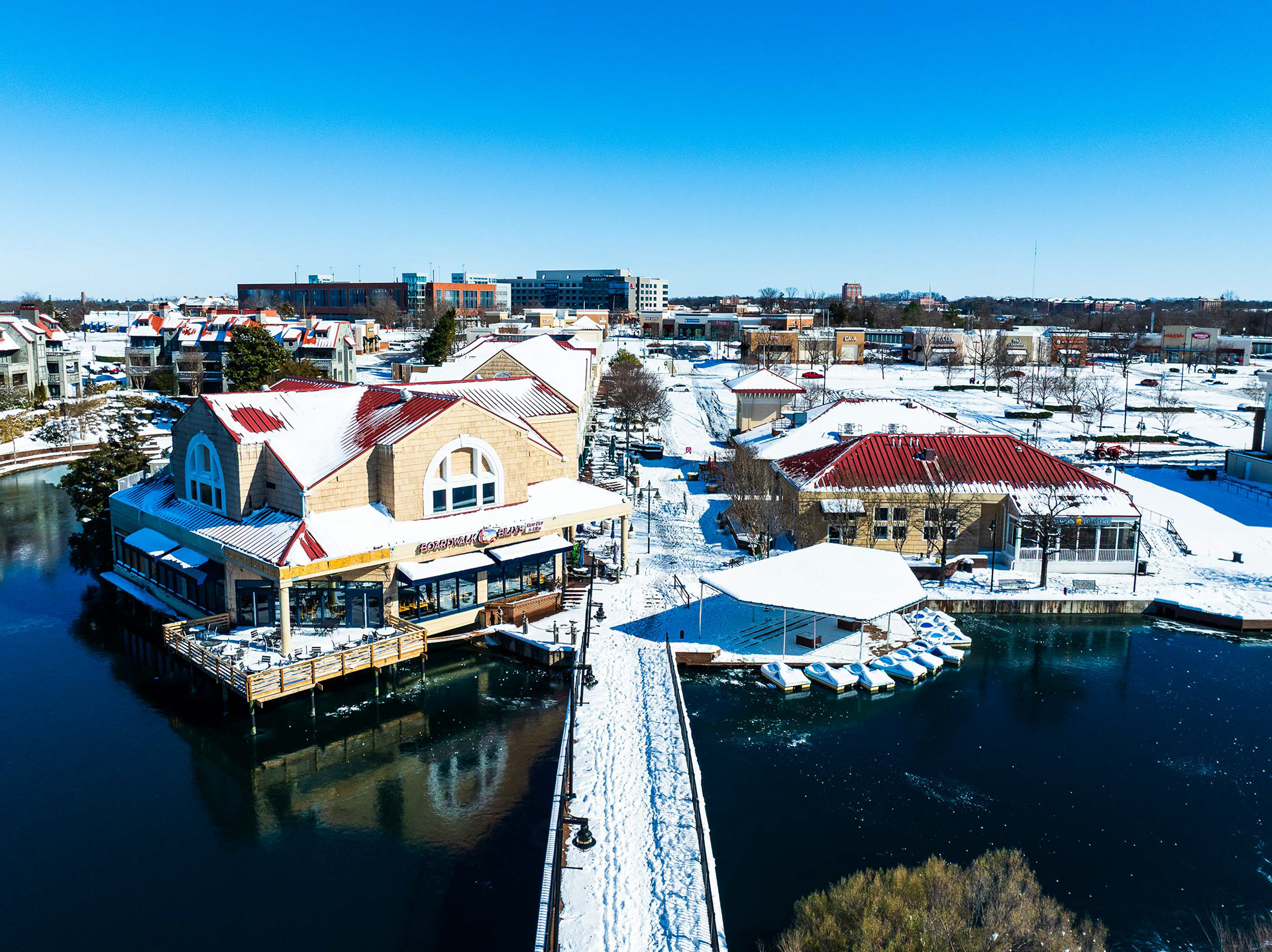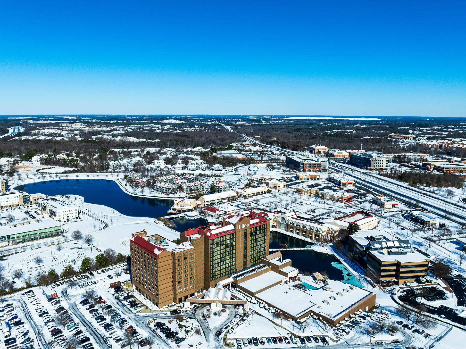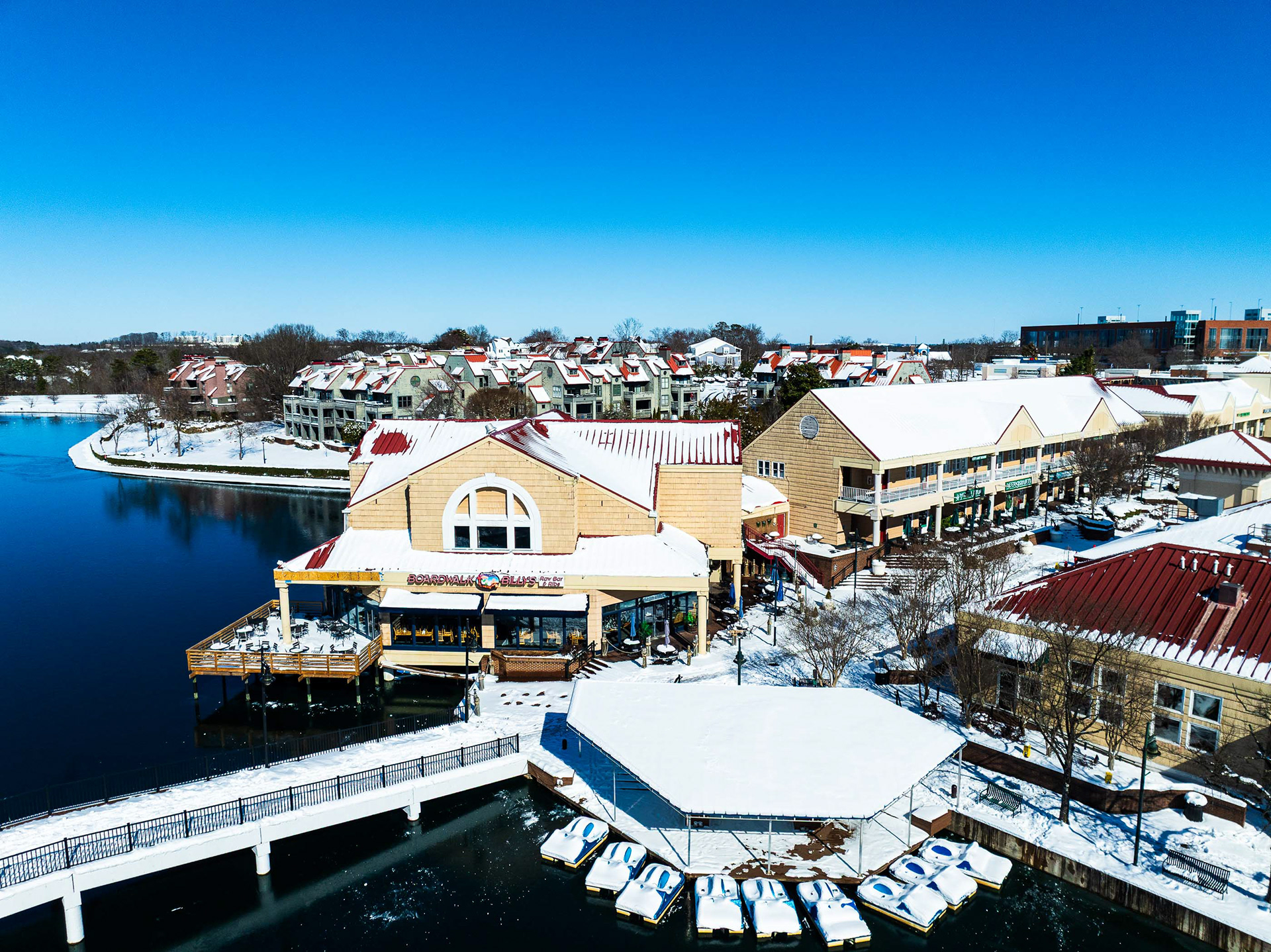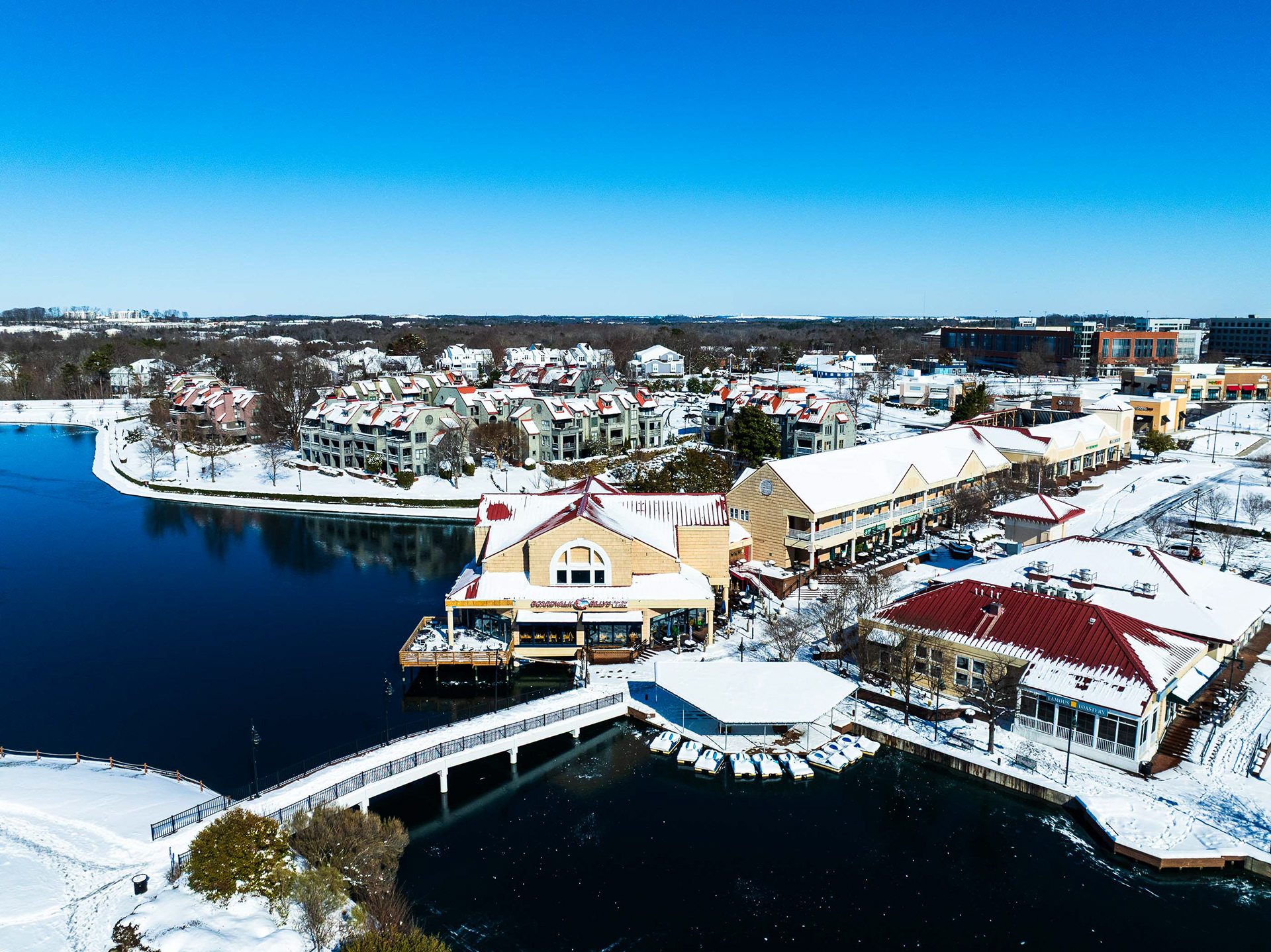 A professional aerial photography series capturing a rare, pristine snowfall across University City in Charlotte, North Carolina. This collection showcases the unique intersection of academic architecture, modern retail hubs, and serene lakeside living.